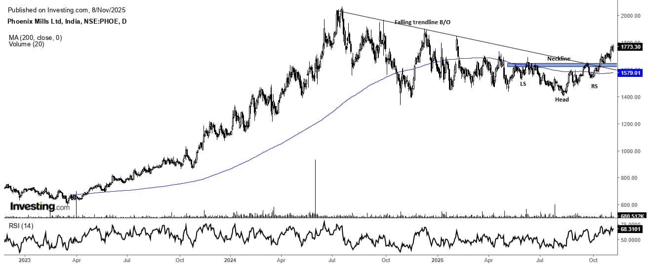 - Trading Above 200 SMAs: Phoenix Mills is now trading and staying above its 200-day Simple Moving Averages for the first time since October 2024, showing a possible trend change.