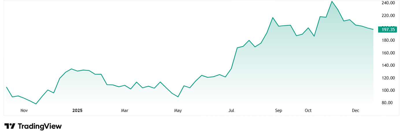 The share price of Garuda Construction and Engineering Ltd was about Rs 104 when it was listed in October 2024. And as of closing on 26th December 2025 it was Rs 197, which is a jump of 90%.