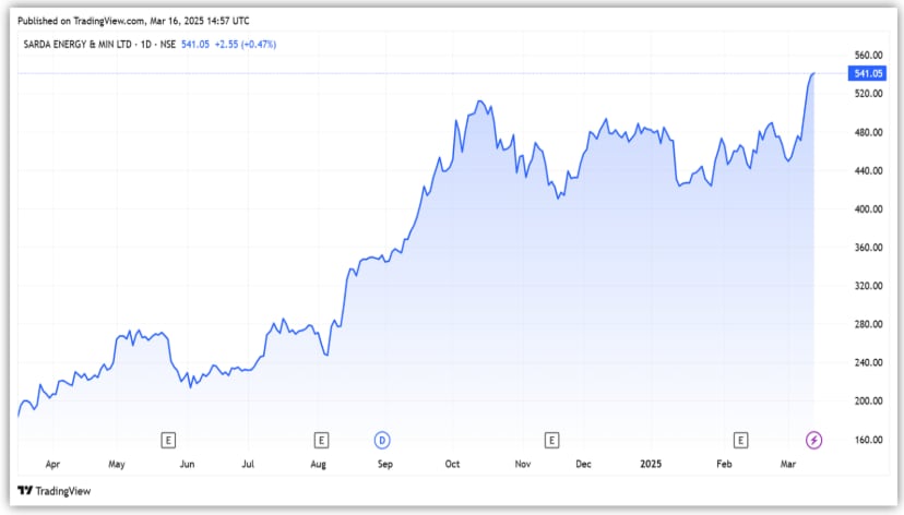 Sarda Energy stock price is up 12.5% year-to-date and 171% in the last one year.