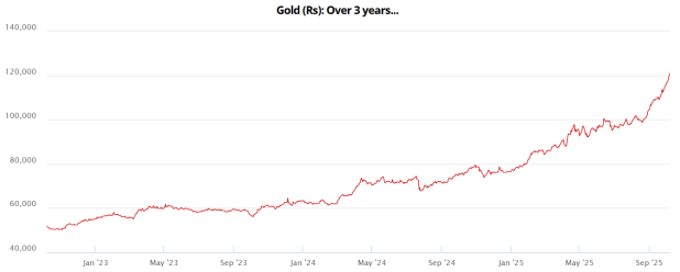 In fact, since August 2024, the gold price has moved up from around 70,000 levels. That’s a rise of over 78% in a little over 14 months.