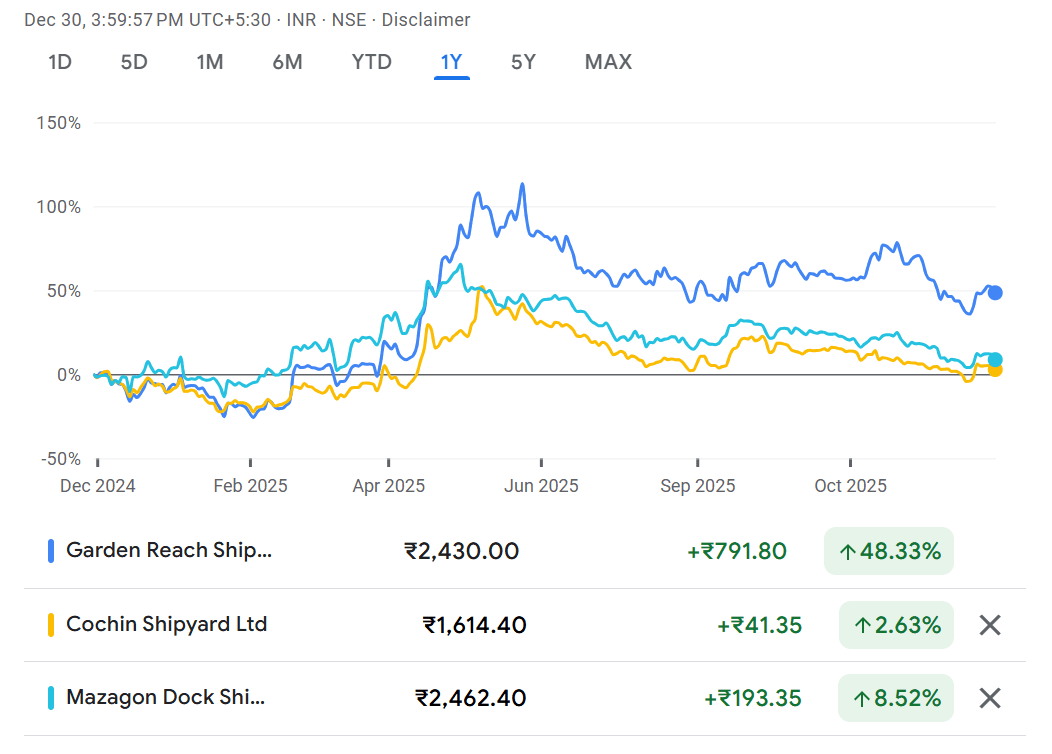 Share Price of GRSE, Cochin, and Mazagon