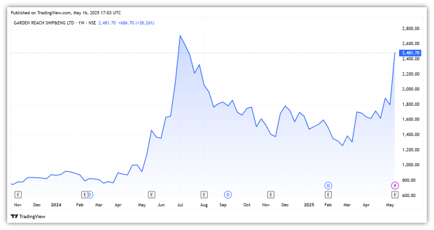 Garden Reach revenue increased 41% from last year to ₹50.8 billion in FY25, with margins steady at about 15%. Net profit jumped 48% to ₹5.3 billion. A strong order book and timely execution supported the strong all-around performance.