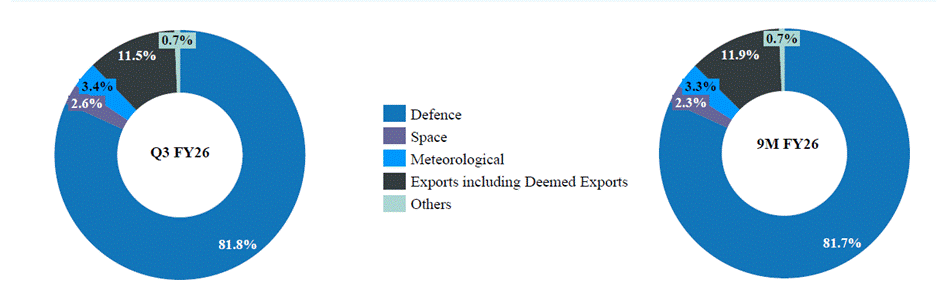 Exports, including deemed exports, contributed 11.9% to revenue in 9MFY26.