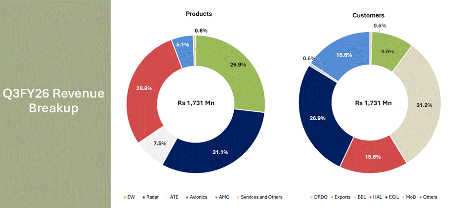 The company’s customers include the Ministry of Defence, Defence Public Sector Undertakings, DRDO, and the private sector. It possesses domain expertise in key areas of defence electronics, including Radars, electronic warfare, Communication systems, Avionics, and satellites.