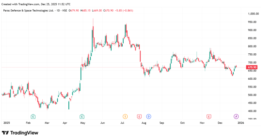 Both these subsidiaries accounted for 4.7% of the company’s FY25 revenue of ₹365 crore. Paras’ financial growth has been robust. Revenue increased by 16.4% year-on-year to ₹199 crore in H1 FY26, driven by order book execution. PAT increased by 22.2% to ₹33 crore, even as operating margins declined 140 bps to 26.1%. As of 17 November, Paras’ order book stood at ₹1,000 crore, providing revenue visibility of over 2 years.
