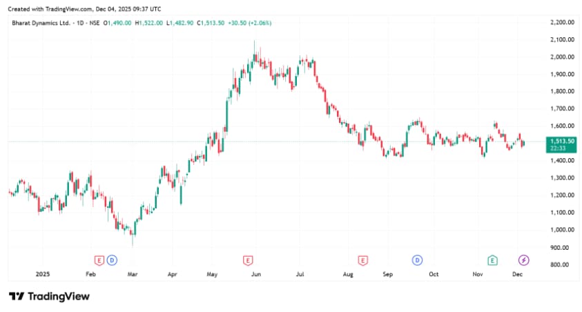 Bharat Dynamics has a strong existing order book of nearly ₹235 billion, slated for execution over the next 3-4 years. The company has a robust order pipeline of ₹500 billion over the next 5 years, with management targeting ₹200 billion in orders to materialize over the next 2-3 years.