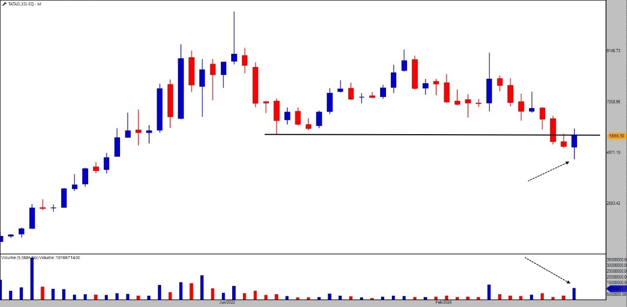 After breaking down below a crucial swing low, Tata Elxsi’s stock experienced a sharp bullish reversal from its 52-week lows. This shakeout move — commonly seen before a major rally — hints at a classic bear trap where weak hands exit and smart investors step in.