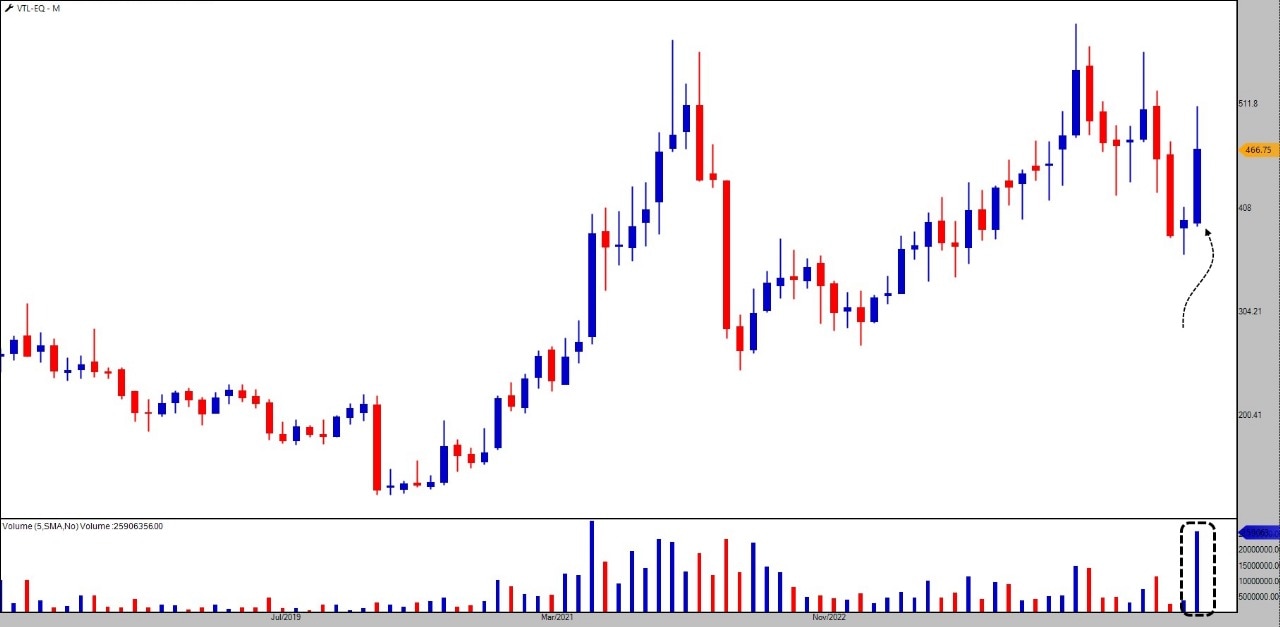 Rising volumes—doubling the previous 10-month average—confirmed the surge, a clear sign of smart money accumulation. The stock’s behaviour suggests that the worst may be over, and a potential fresh uptrend could be underway.