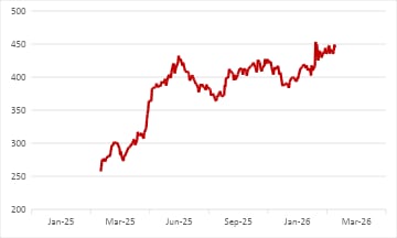 Kalyan Jewellers Share Price 1-Year