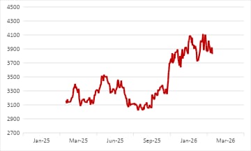 In Q3 FY26, revenue increased 42% YoY to Rs 103,434 m. Net profit rose 90% to Rs 4,163 m.