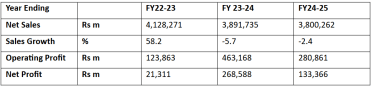 On the financial front, the company reported revenues of Rs 470,654 m in Q1 FY26, against Rs 485,289 m in the corresponding period of last year. The net profits of the company dropped to Rs 36,246 m in Q1 FY26, from Rs 53,593 m YoY.