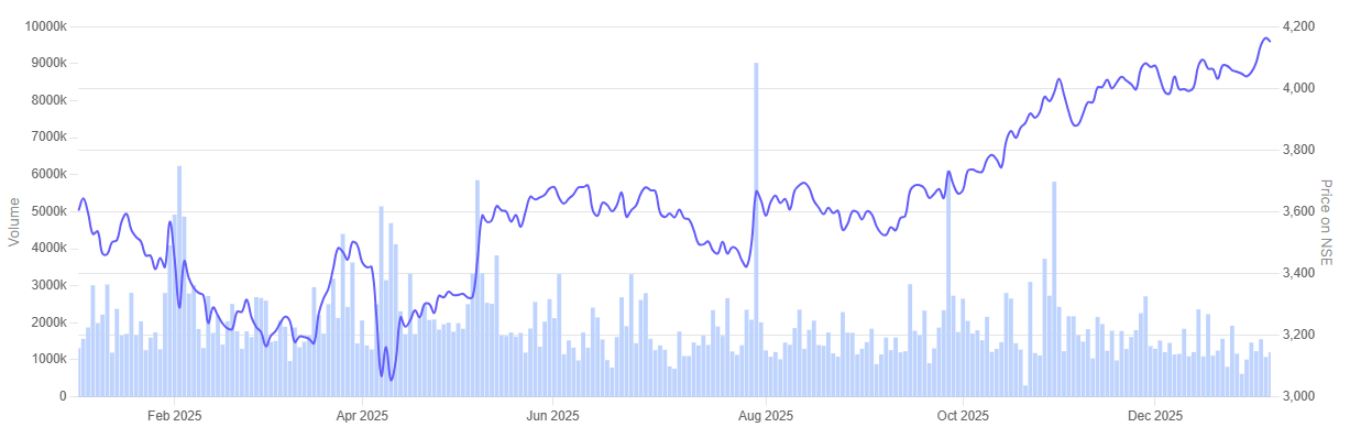 Larsen & Toubro trades at an EV/EBITDA of 17.5, which is quite close to the industry median of 18.3. Its ROCE is 14.5 per cent. This shows that the business is running fairly efficiently and generating steady returns. The stock is not very cheap, but the valuation seems in line with its scale and stable earnings profile.