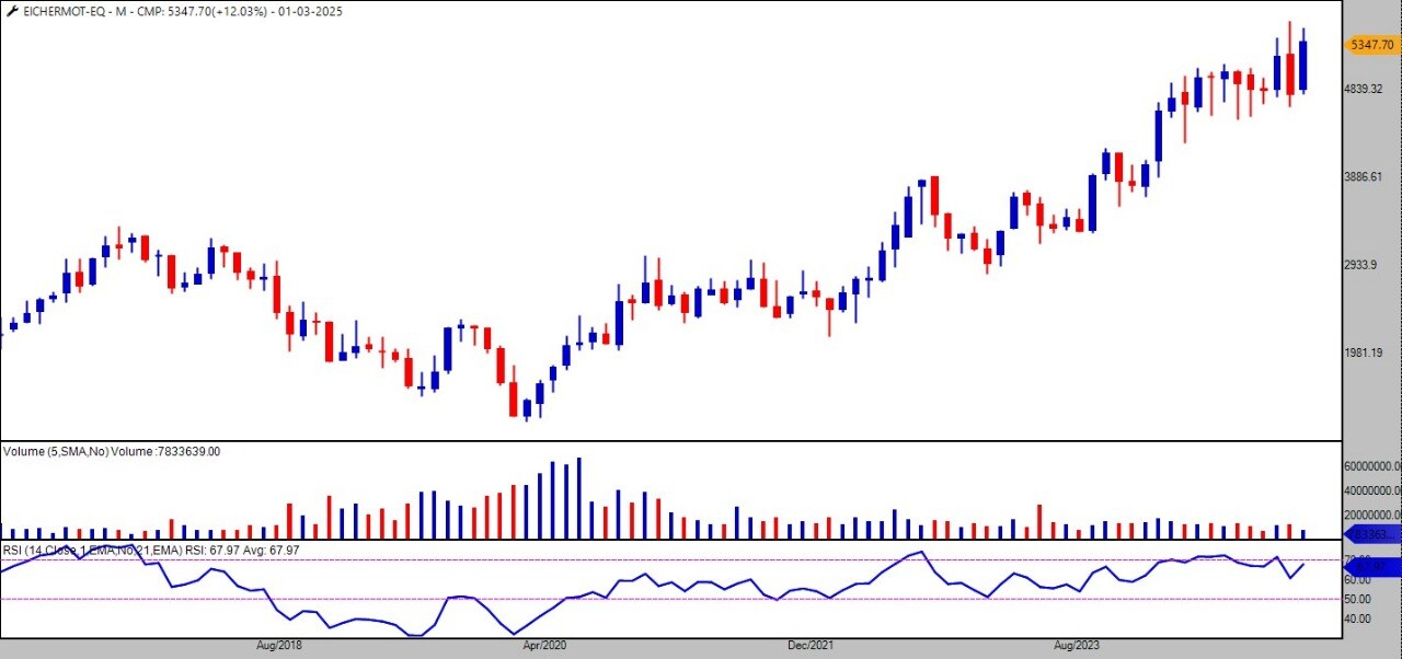 4. Eicher Motors – The iconic Royal Enfield manufacturer has made a strong comeback, indicating renewed demand and investor confidence in its long-term prospects.