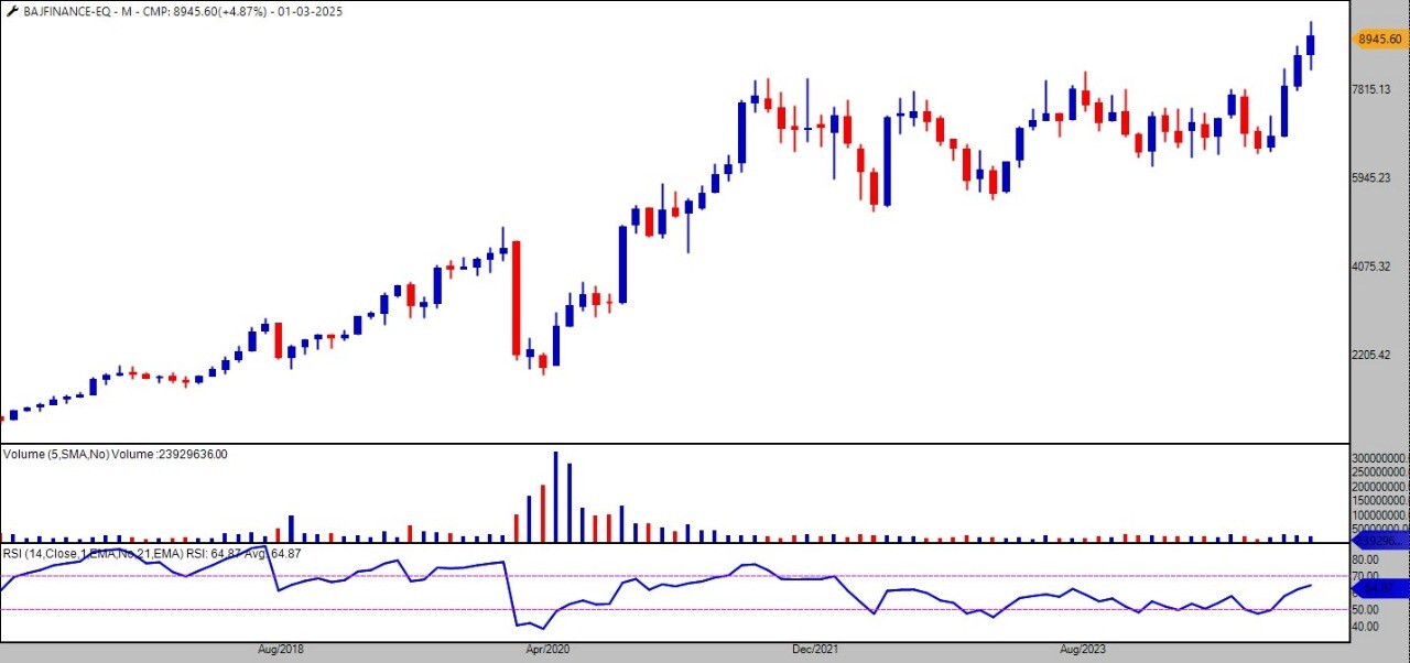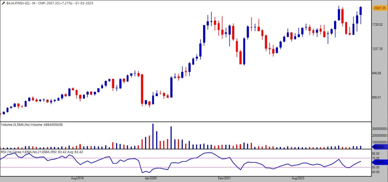2. Bajaj Finserv – With a diversified business model, Bajaj Finserv continues to demonstrate strength, driven by increasing volumes and a robust quarterly close.