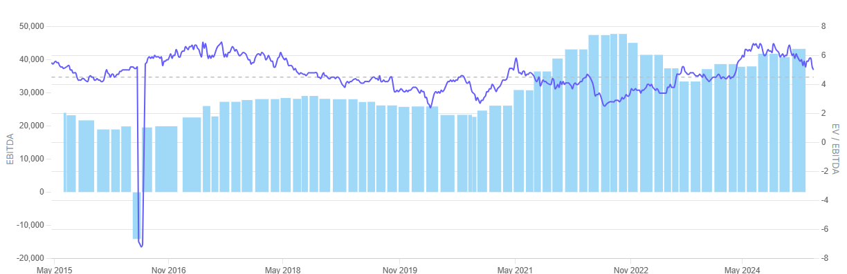 Moreover, Maithan Alloys’ EV/EBITDA multiple is presently nearly at levels of 2020. Nonetheless, the worst valuation occurred in 2022, when the multiple fell below 2x. Even though EBITDA has been stable, the recent fall in valuation indicates possible undervaluation.