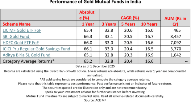 That said, based on long-term returns, there are certain gold savings mutual funds that stand out…