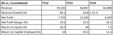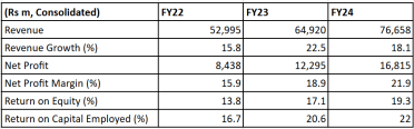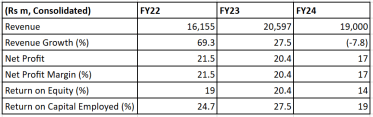 The company maintained strong financial health, with an average RoE of 16.5% and RoCE of 22.9%.