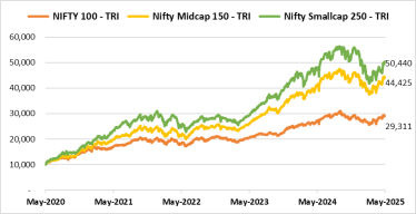 After a good 2023 and 2024, midcaps and smallcaps corrected sharply. This was due to profit-booking, liquidity issues, and high PE multiples, leading investors back to largecaps.