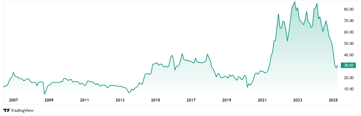 The share price of Allcargo Logistics was around Rs 14 in April 2020 and as on closing of 24th April 2025, the share price is Rs 30.8, which is a 120% jump