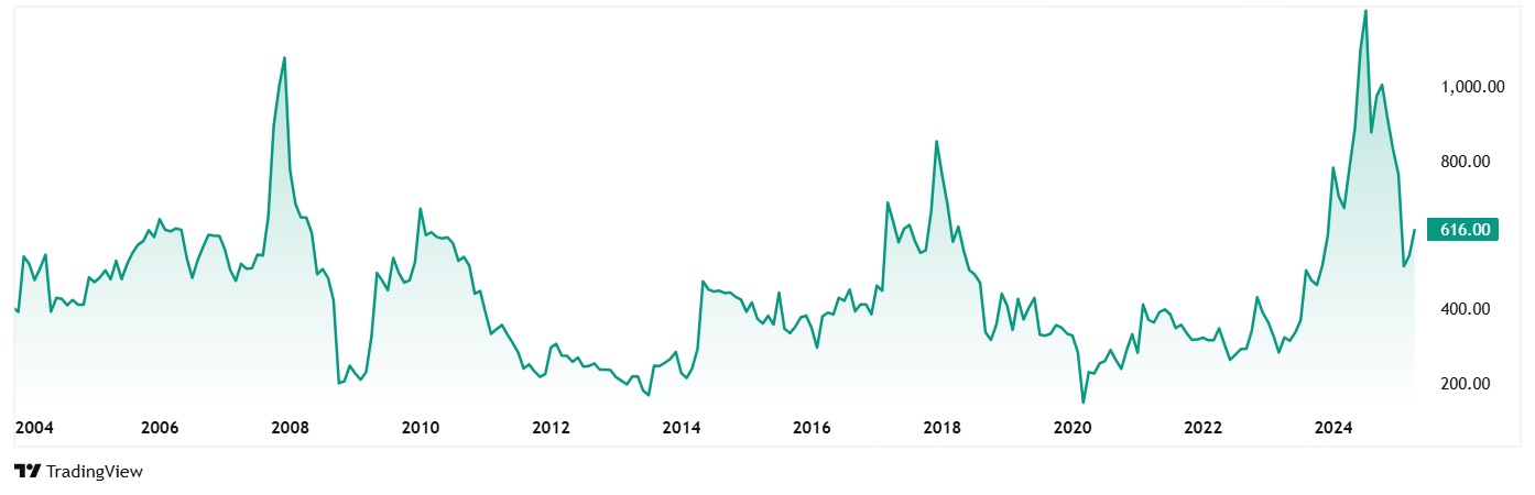 The share price of Dredging Corporation of India was about Rs 224 in April 2020, and as on the closing for 24th April 2025, the price was at Rs 615, which is a jump of 175%.