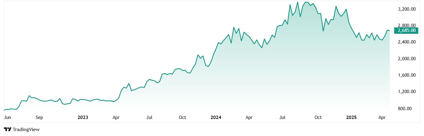 The share price of Ethos was about Rs 745 when listed in June 2022, which has grown to the current price of Rs 2,685 (closing of 24th April 2025), which is a jump of 260%.