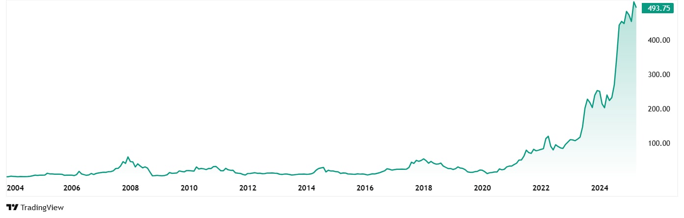 The share price of Sarda has seen a jump of almost 3,700% from its April 2020 price of around Rs 13 to its closing price on 24th April 2025 of Rs 493.