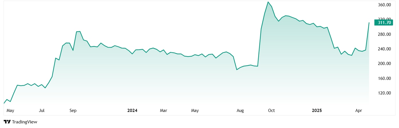 The share price of Infinium was around Rs 90 at listing in April 2023, which is now jumped to Rs 312 (as on closing of 24th April 2025), which is a jump of about 247%.