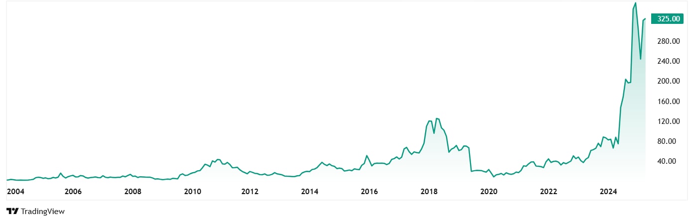 The share price of Windsor Machines was about Rs 11 in April 2020, and as on the closing for 24th April 2025, the price was at Rs 323, logging in a jump of 2,836%.