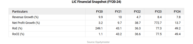 LIC’s financials have consistently grown in the last five years, with revenue and profits growing at a CAGR of 8% and 73%, respectively.