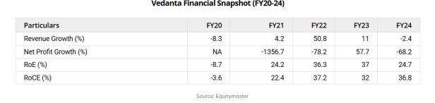 Vedanta sales have grown at a CAGR of 9.3% over the last five years. However, profits have shown a negative growth of 5% due to volatility in metal prices.