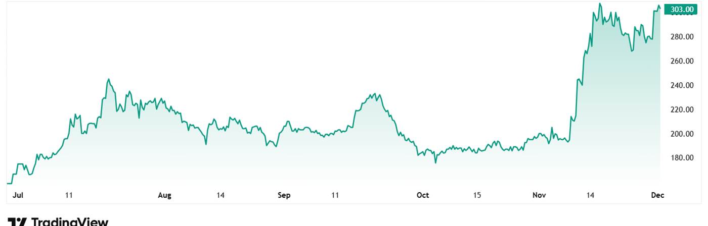 The share price of Safe Enterprises Retail Fixtures Limited was around Rs 158 at listing in June 2025, and as on 1st December it was Rs 300. That is a jump of 90% in a few months.