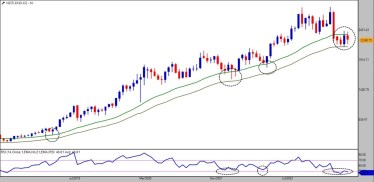 On the monthly chart of the Nifty FMCG Index, the 34-month Exponential Moving Average (34MEMA) has consistently acted as a strong demand zone since 2015. The Moving Average Channel, which uses the 34EMA for both highs and lows, has shown significant price support, indicating that the index is likely to find buying interest during its current pullback.