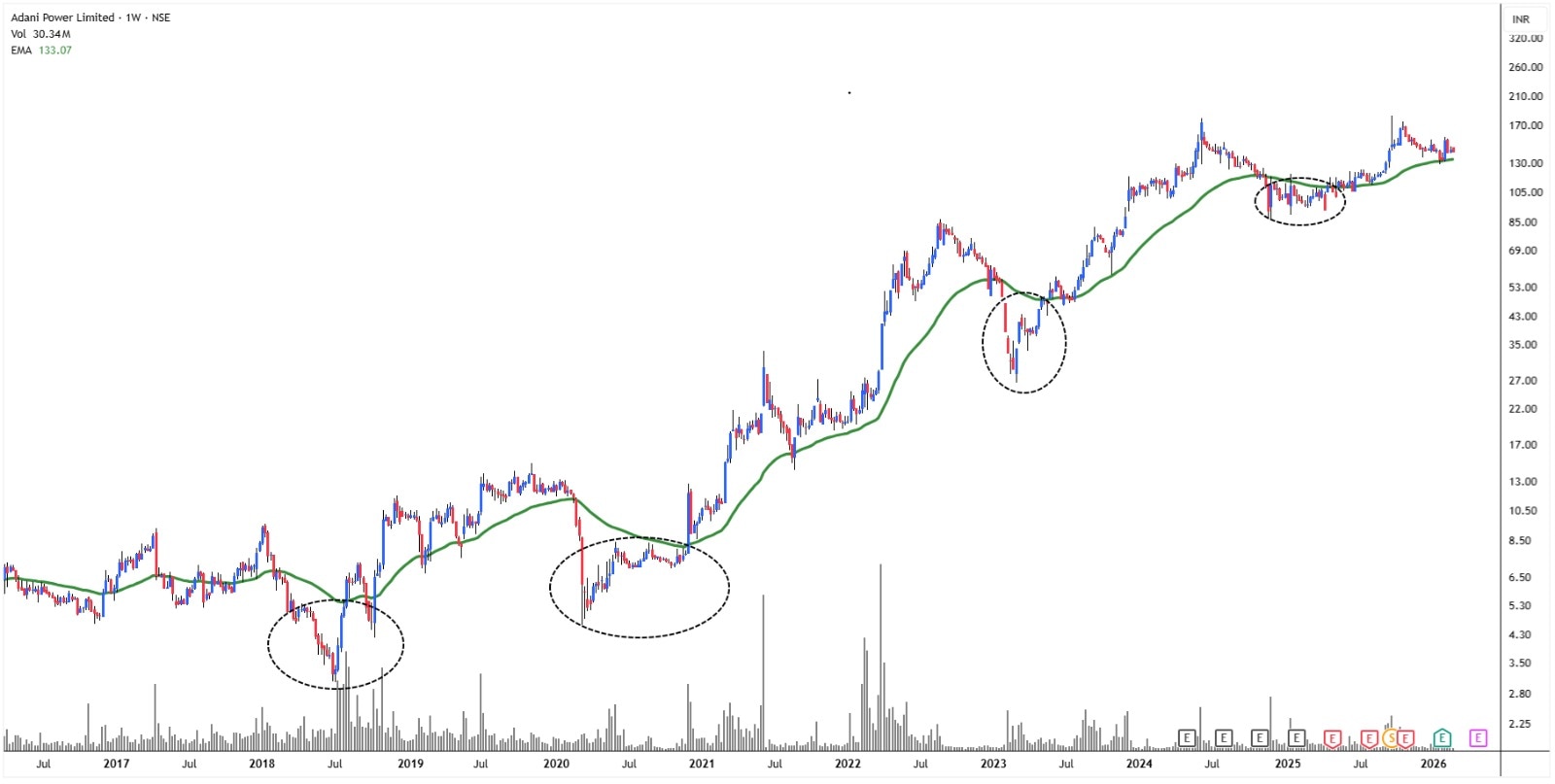 If history repeats itself, ADANIPOWER could reach new highs, maybe even over Rs.200 in the future.