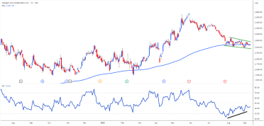 On the daily chart, a falling wedge bullish reversal pattern is visible, with a breakout above Rs. 2,800 would confirm the pattern and indicate that the worst of the correction may be behind.