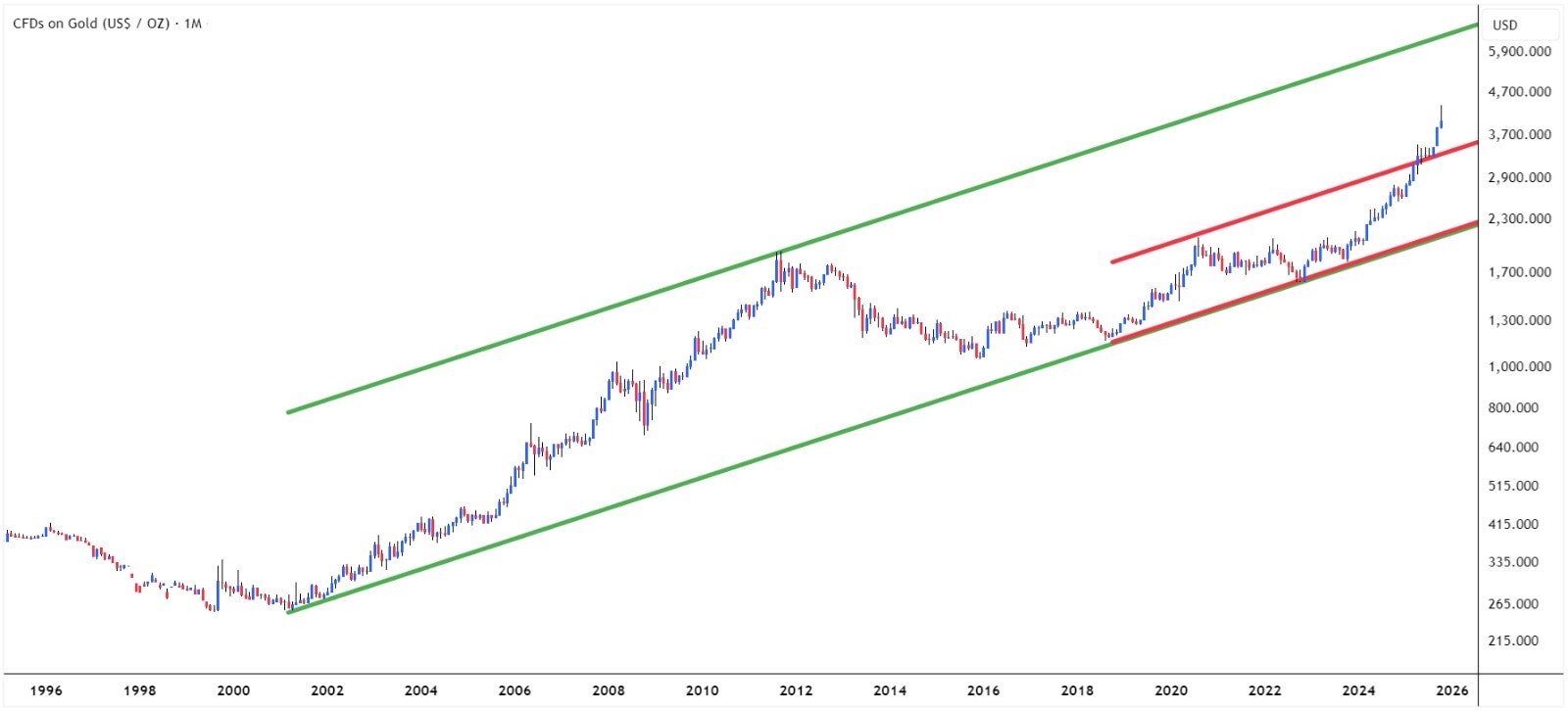 When we step back and look at Gold on the COMEX Monthly chart, a clear story emerges.