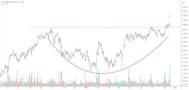 On the daily chart, the stock price of TVS Motors has formed a rounding bottom pattern signalling a gradual shift from a bearish to a bullish trend. The stock successfully broke out in early August followed by a bullish momentum with volumes suggesting the potential continuation of the current trend, making TVS Motors a stock to watch out for.