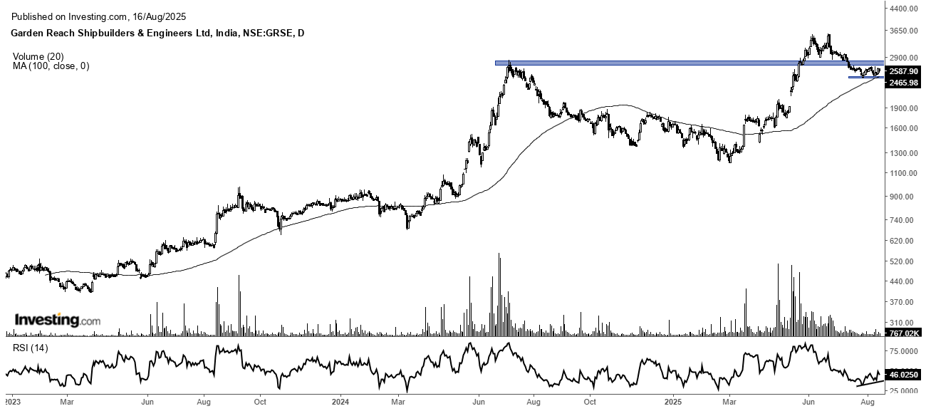From 2022 through 2024, if you were holding defence stocks, chances are you had a big grin on your face. That joyride hit some bumps this year stock prices have been correcting, and it’s been a bit of a waiting game. Still, with all the chaos in the world (geopolitics, surprise tariffs from the US, you name it), the Indian defence sector is still holding up better than most. In fact, when you zoom in, shipping giants like Garden Reach Shipbuilders (GRSE) and Cochin Shipyard are quietly making their case for a comeback. I’m finding their technical charts hard to ignore.