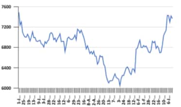 The stock touched its 52-week high of Rs 7,583 on 1 July 2025 and a 52-week low of Rs 6,002.2 on 28 February 2025.