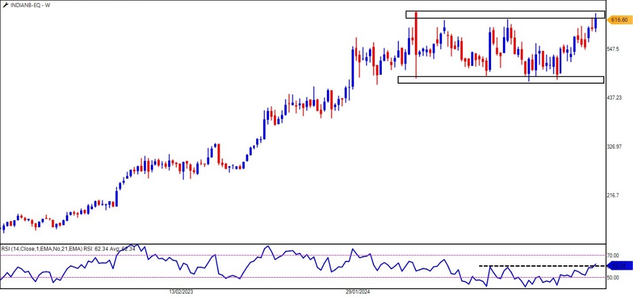 The RSI on the weekly chart has already broken out of its resistance zone, indicating that the momentum is shifting in favour of the bulls. This adds to the potential bullish case for Indian Bank, suggesting it may be a top pick in the PSU banking space.