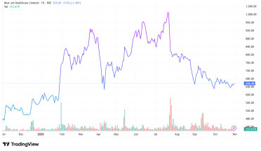 1-year share price chart of Blue Jet Healthcare Ltd.
