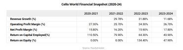 Cello is targeting overall revenue growth of 12–14% in FY26. Near-term profitability may be weighed down by higher marketing spends and the scale-up of new businesses, but the core operations continue to be stable.