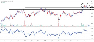 Ask Automotive Ltd is signalling the potential bullish trend on the charts as the stock closed the week at Rs 542.25, just shy of its all-time high of Rs 547.70, marking its highest ever closing price. The breakout from the previous resistance level of Rs 508 was retested and the resumption signals potential upside to be added to the watchlist.