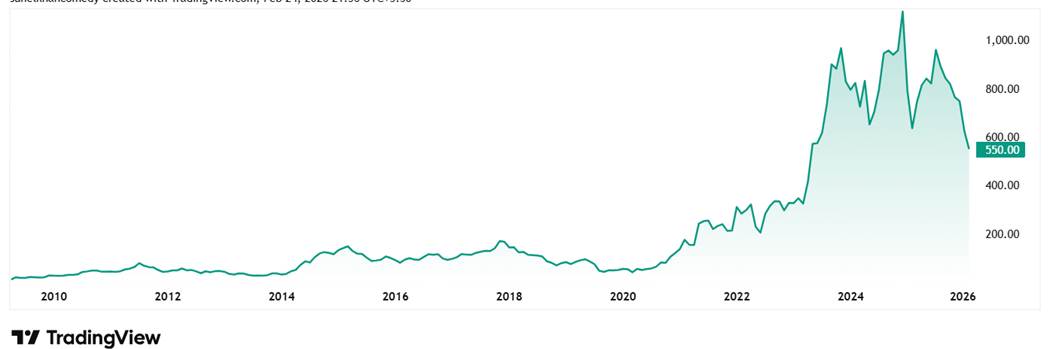 The share price of AGI Greenpac Ltd was around Rs 175 in February 2021 and as of closing on 24th February 2026 it was Rs 550, which is a jump of 215%.