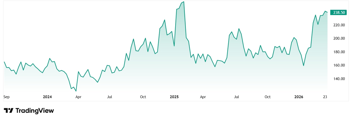 The share price of Aeroflex Industries was Rs 163 when it was listed in September 2023, and as of closing on 30th March 2026 it was Rs 239.