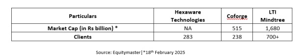 LTI Mindtree is also leading in terms of the client base. It has over 700 clients across various sectors and countries. After LTI Mindtree, Hexaware Technologies has the next highest client base of 283, followed by Coforge at 238 clients.