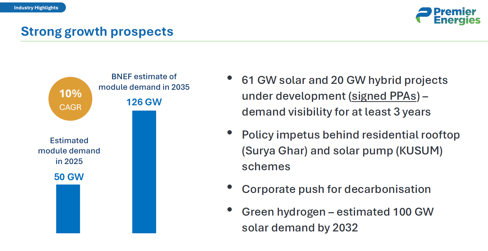 Increasing demand for solar modules is expected to be a key driver. Premier Energies estimates that solar module demand in India will more than double to 126 GW by 2035, from 50 GW in 2025.