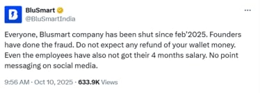 Some of her other bets include, Furlenco (furniture rental) which even Aamir Khan invested in, Mokobara (luggage), and Nua (feminine hygiene). She had also invested in BluSmart Mobility, which turned out to be a dead horse. Take a look at what the company’s employees posted on X.