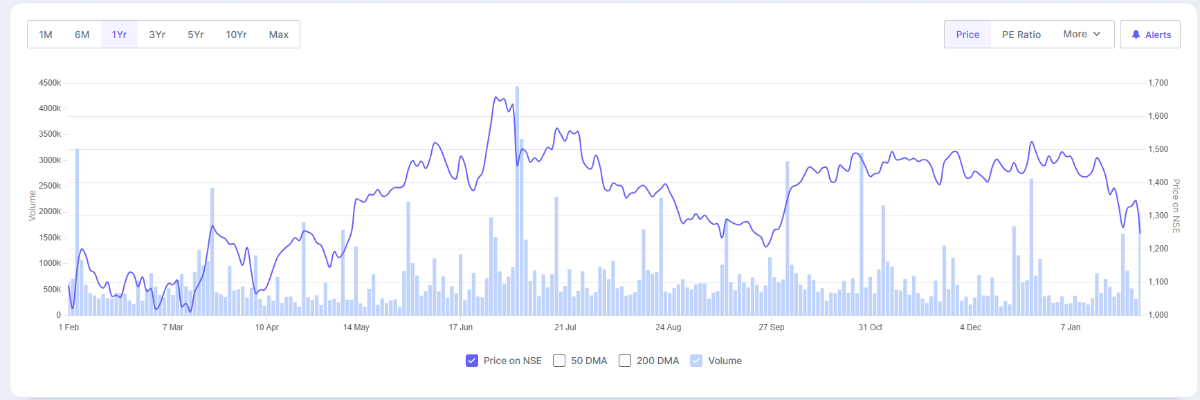 That transition has played out in the stock as well. On a year-to-date basis from 1 February 2025 to 1 February 2026, Nuvama Wealth’s share price rose from about ₹1,090 to ₹1,246, a ~12.5% gain.