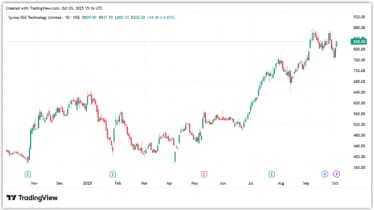 As of June 30, 2025, its order book stood at ₹74 billion, providing revenue visibility of over 2 years. It expects revenue to grow by 65% to ₹45 billion in FY26, with margins exceeding 15.6%. Kaynes is trading at a price-to-equity multiple of 154x, higher than its 3-year median of 120x, and the industry median P/E of 35.
