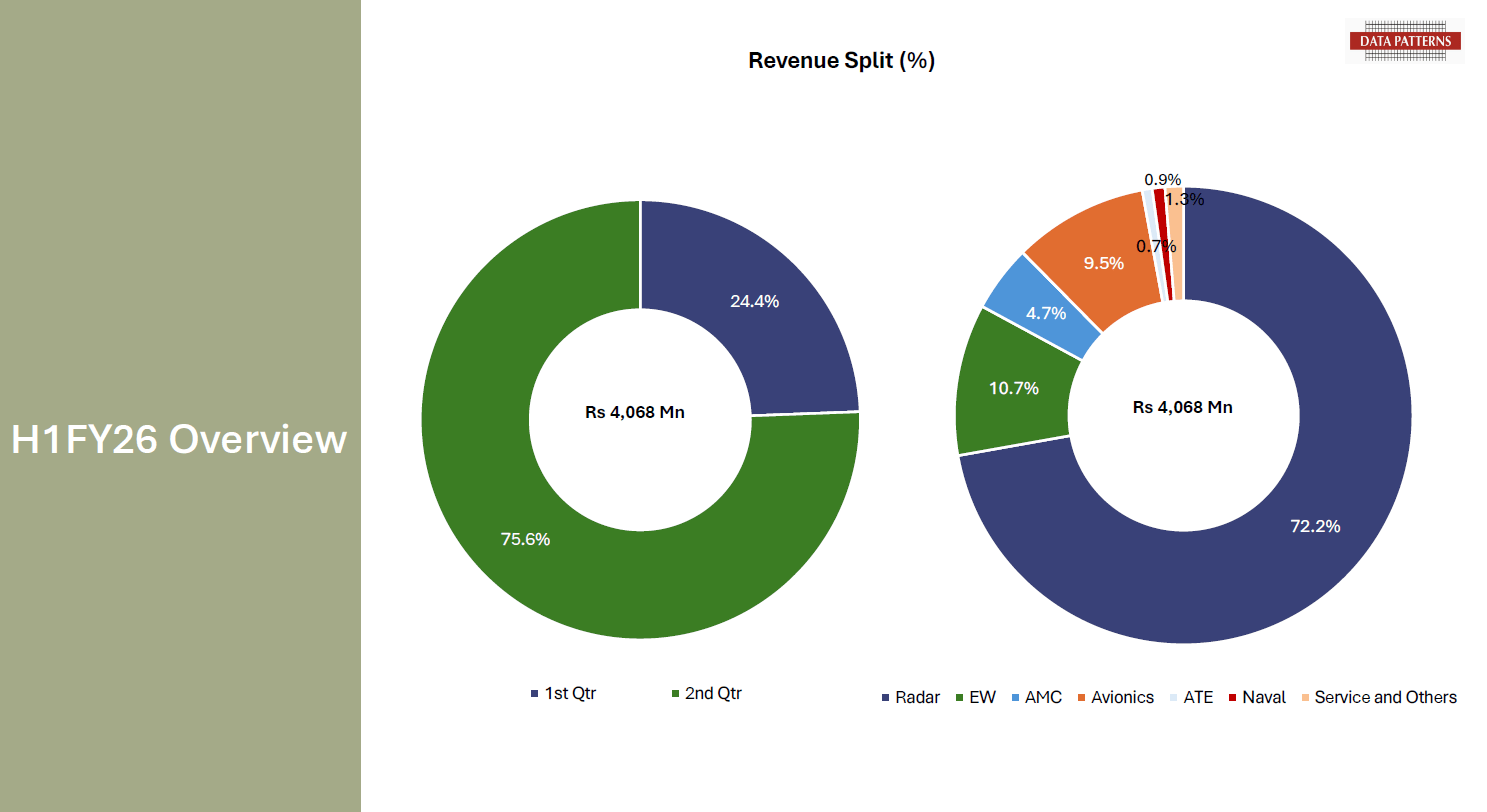 Avionics is another part of Data Patterns’ revenue profile, contributing 9.5% of the total revenue in H1 FY26. Specific systems include glass cockpit displays and systems for platforms such as the Light Combat Aircraft and Intermediate Jet Trainers. The company states that its avionics range is unique in India.
